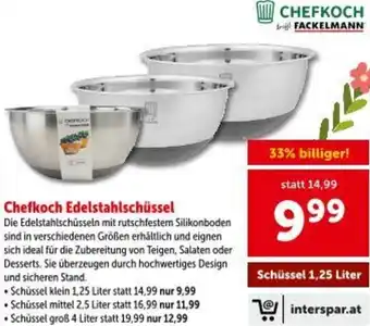 Jetzt im Angebot bei Interspar: Chefkoch Edelstahlschüssel ✅ Aktion gültig von 26-02 bis 11-03.