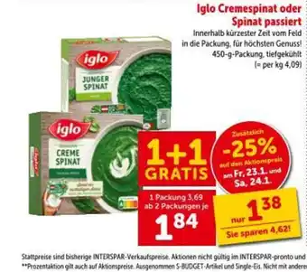 Jetzt im Angebot bei Interspar: Cremespinat oder Spinat passiert ✅ Aktion gültig von 22-01 bis 28-01.