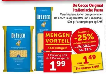 Jetzt im Angebot bei Interspar: De Cecco Original Italienische Pasta ✅ Aktion gültig von 29-01 bis 11-02.