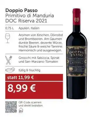 Jetzt im Angebot bei Interspar: Doppio Passo Primitivo di Manduria DOC Riserva 2021 ✅ Aktion gültig von 8-01 bis 4-02.