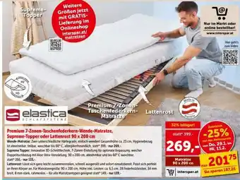 Jetzt im Angebot bei Interspar: Premium 7-Zonen-Taschenfederkern-Wende-Matratze, Supreme-Topper oder Lattenrost 90 x 200 cm ✅ Aktion gültig von 29-01 bis 11-02.