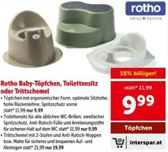 Jetzt im Angebot bei Interspar: Rotho Baby-Töpfchen, Toilettensitz oder Trittschemel ✅ Aktion gültig von 15-01 bis 28-01.