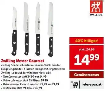 Jetzt im Angebot bei Interspar: Zwilling messer gourmet ✅ Aktion gültig von 9-04 bis 22-04.
