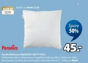Jetzt im Angebot bei JYSK: Synthetikkissen 70x80x4 paradies softy ✅ Aktion gültig von 2-01 bis 20-01.