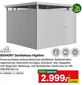 Biohort gerätehaus highline Aktion bei Lagerhaus