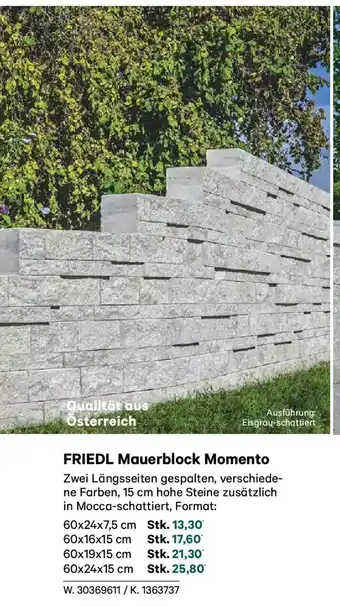 FRIEDL Mauerblock Momento Angebote und Online Aktionen bei Lagerhaus