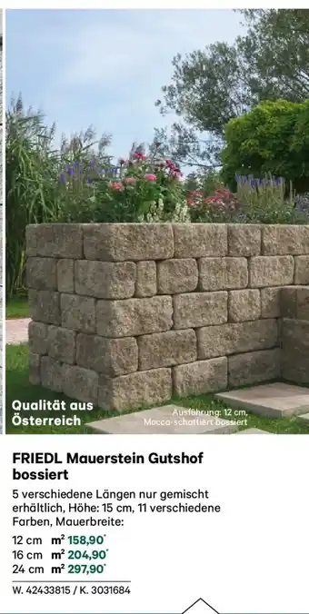 FRIEDL Mauerstein Gutshof bossiert Aktion bei Lagerhaus