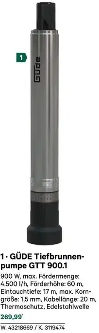 Jetzt im Angebot bei Lagerhaus: Güde tiefbrunnen- pumpe gtt 900.1 ✅ Aktion gültig von 22-02 bis 31-05.