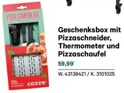 Geschenksbox mit pizzaschneider, thermometer und pizzaschaufel