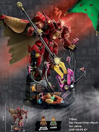 Den Preis von Der Feuerritter-Mech finden Sie oben auf der Website, zusammen mit dem Datum, ab wann das Angebot erhältlich ist. Sie finden die Preise auch im aktuellen Lego Flugblatt oder auf der Lego Website. Durch die Angebote aus dem Flugblatt können Sie sicher sein, die Lego Produkte zum garantiert besten Preis zu ergattern.