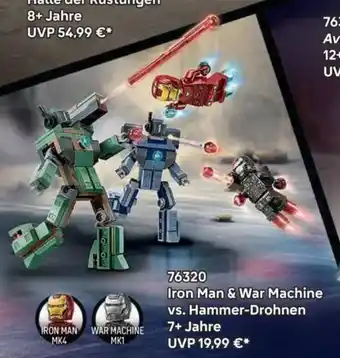 Abgesehen von Iron Man & War Machine vs. Hammer-Drohnen, bietet Lego eine Menge anderer Artikel im aktuellen Flugblatt an. Behalten Sie den wöchentlichen Lego Flugblatt im Blick, um die günstigsten Angebote und Aktionen aus dem Prospekt nicht zu verpassen. Abgesehen von Iron Man & War Machine vs. Hammer-Drohnen können Sie weitere, interessante und super günstige Angebote entdecken: Iron Man Mech vs. Ultron, Vorschlag- hammer & Iron Man MK4.