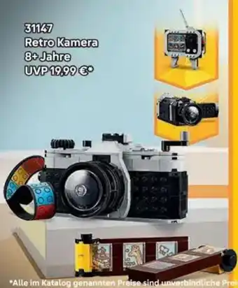 Den Preis von Retro Kamera finden Sie oben auf der Website, zusammen mit dem Datum, ab wann das Angebot erhältlich ist. Sie finden die Preise auch im aktuellen Lego Flugblatt oder auf der Lego Website. Durch die Angebote aus dem Flugblatt können Sie sicher sein, die Lego Produkte zum garantiert besten Preis zu ergattern.