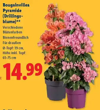 Jetzt im Angebot bei Lidl: Bougainvillea Pyramide (Drillings- blume) ✅ Aktion gültig von 23-04 bis 29-04.