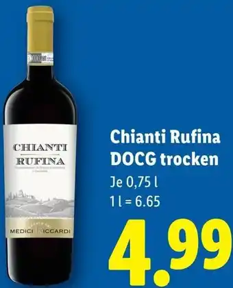 Jetzt im Angebot bei Lidl: Chianti Rufina DOCG trocken ✅ Aktion gültig von 22-01 bis 28-01.