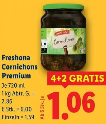 Jetzt im Angebot bei Lidl: Freshona Cornichons Premium ✅ Aktion gültig von 29-01 bis 5-02.