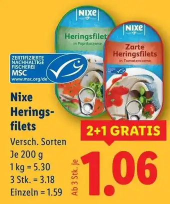 Jetzt im Angebot bei Lidl: Nixe Herings filets ✅ Aktion gültig von 29-01 bis 5-02.