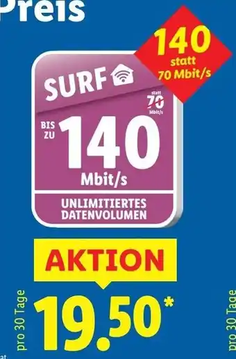 Jetzt im Angebot bei Lidl: SURF 140 Mbit/s ✅ Aktion gültig von 29-01 bis 5-02.