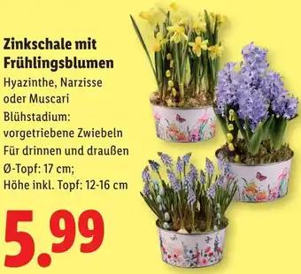 Jetzt im Angebot bei Lidl: Zinkschale mit Frühlingsblumen ✅ Aktion gültig von 22-01 bis 28-01.