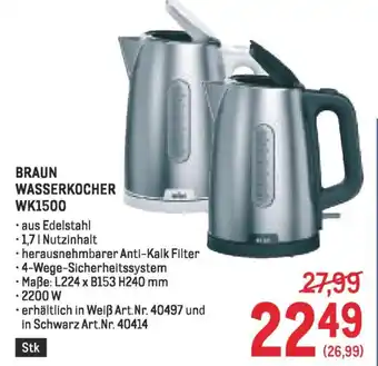 Jetzt im Angebot bei Metro: BRAUN WASSERKOCHER WK1500 ✅ Aktion gültig von 22-01 bis 4-02.