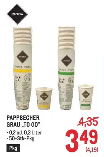 Jetzt im Angebot bei Metro: Pappbecher grau „to go" ✅ Aktion gültig von 8-01 bis 21-01.