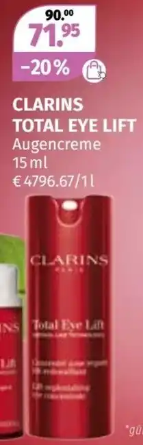Jetzt im Angebot bei Müller: Clarins total eye lift ✅ Aktion gültig von 2-03 bis 14-03.