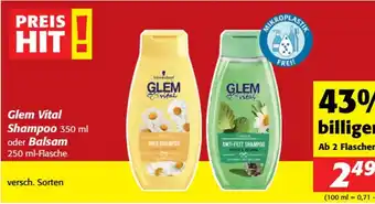 Den Preis von Glem Vital Shampoo finden Sie oben auf der Website, zusammen mit dem Datum, ab wann das Angebot erhältlich ist. Sie finden die Preise auch im aktuellen Nah&Frisch Flugblatt oder auf der Nah&Frisch Website. Durch die Angebote aus dem Flugblatt können Sie sicher sein, die Nah&Frisch Produkte zum garantiert besten Preis zu ergattern.