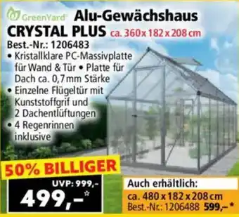 Top Green yard alu-gewächshaus crystal plus Angebote und Aktionen bei Norma