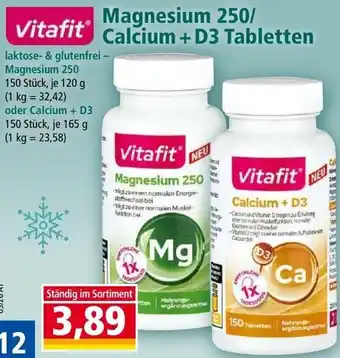 Jetzt im Angebot bei Norma: Vitafit Magnesium 250 Vitafit Calcium + D3 Tabletten ✅ Aktion gültig von 12-01 bis 18-01.