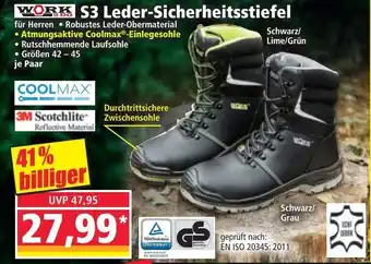 Jetzt im Angebot bei Norma: WORK S3 Leder-Sicherheitsstiefel ✅ Aktion gültig von 2-02 bis 8-02.