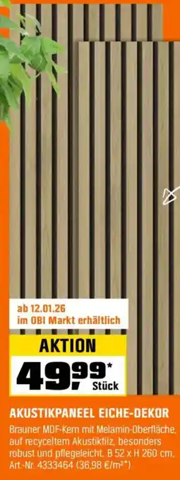 Jetzt im Angebot bei OBI: AKUSTIKPANEEL EICHE-DEKOR ✅ Aktion gültig von 2-01 bis 31-01.