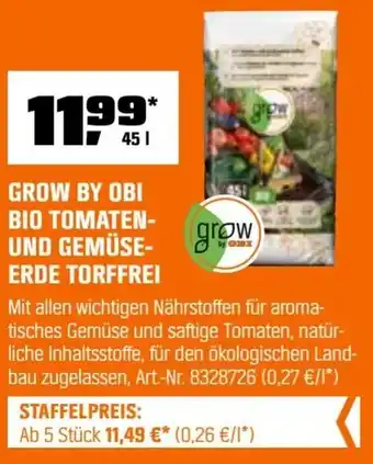 Jetzt im Angebot bei OBI: Grow by obi bio tomaten- und gemüse erde torffrei ✅ Aktion gültig von 1-02 bis 28-02.