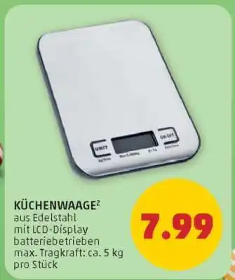Den Preis von KÜCHENWAAGE² finden Sie oben auf der Website, zusammen mit dem Datum, ab wann das Angebot erhältlich ist. Sie finden die Preise auch im aktuellen PENNY Flugblatt oder auf der PENNY Website. Durch die Angebote aus dem Flugblatt können Sie sicher sein, die PENNY Produkte zum garantiert besten Preis zu ergattern.
