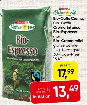 Jetzt im Angebot bei Spar: Bio-Caffè Crema, Bio-Caffè Crema intenso, Bio-Espresso oder Bio-Crema mild ✅ Aktion gültig von 2-01 bis 14-01.