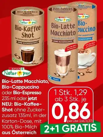 Jetzt im Angebot bei Spar: Bio-Latte Macchiato Bio-Cappuccino oder Bio-Espresso ✅ Aktion gültig von 29-01 bis 11-02.
