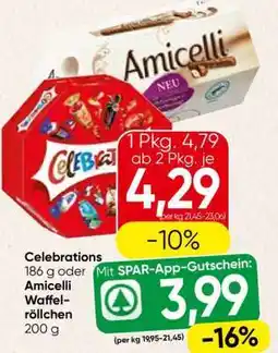Celebrations 186 g oder Amicelli Waffelröllchen 200 g