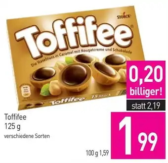 Den Preis von Toffifee finden Sie oben auf der Website, zusammen mit dem Datum, ab wann das Angebot erhältlich ist. Sie finden die Preise auch im aktuellen Sutterlüty Flugblatt oder auf der Sutterlüty Website. Durch die Angebote aus dem Flugblatt können Sie sicher sein, die Sutterlüty Produkte zum garantiert besten Preis zu ergattern.