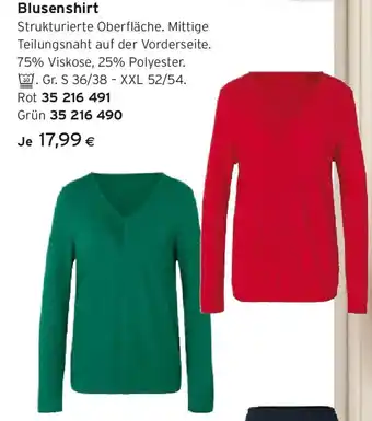 Das Angebot finden Sie in unterschiedlichen Geschäften. Schauen Sie sich alle Produkte aus dem Flugblatt an, um das günstigste Blusenshirt zu ergattern. Wenn Sie gerne nachschauen möchten, ob der Artikel woanders noch günstiger ist, sollten Sie sich die Kategorie 'Kleidung und Schuhe' anschauen. Möglicherweise sind diese Flugblattangebote auch interessant für Sie: Blusenshirt grün, Blusenshirt rot & Bedrucktes Blusenshirt.