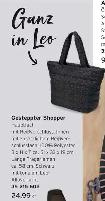 Das Angebot finden Sie in unterschiedlichen Geschäften. Schauen Sie sich alle Produkte aus dem Flugblatt an, um das günstigste Gesteppter Shopper zu ergattern. Wenn Sie gerne nachschauen möchten, ob der Artikel woanders noch günstiger ist, sollten Sie sich die Kategorie 'Kleidung und Schuhe' anschauen. Möglicherweise sind diese Flugblattangebote auch interessant für Sie: Gesteppter shopper, Gesteppter Shopper & Shopper.