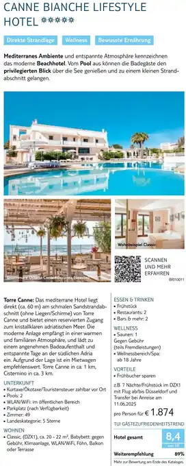Den Preis von Canne bianche lifestyle hotel finden Sie oben auf der Website, zusammen mit dem Datum, ab wann das Angebot erhältlich ist. Sie finden die Preise auch im aktuellen TUI Flugblatt oder auf der TUI Website. Durch die Angebote aus dem Flugblatt können Sie sicher sein, die TUI Produkte zum garantiert besten Preis zu ergattern.