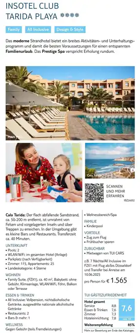 Den Preis von Insotel club tarida playa finden Sie oben auf der Website, zusammen mit dem Datum, ab wann das Angebot erhältlich ist. Sie finden die Preise auch im aktuellen TUI Flugblatt oder auf der TUI Website. Durch die Angebote aus dem Flugblatt können Sie sicher sein, die TUI Produkte zum garantiert besten Preis zu ergattern.