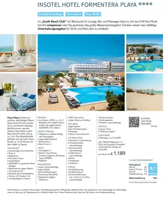 Abgesehen von Insotel hotel formentera playa, bietet TUI eine Menge anderer Artikel im aktuellen Flugblatt an. Behalten Sie den wöchentlichen TUI Flugblatt im Blick, um die günstigsten Angebote und Aktionen aus dem Prospekt nicht zu verpassen. Abgesehen von Insotel hotel formentera playa können Sie weitere, interessante und super günstige Angebote entdecken: Insotel club tarida playa, HOTEL RIU PLAYA PARK & Hotel und spa s'entrador playa.