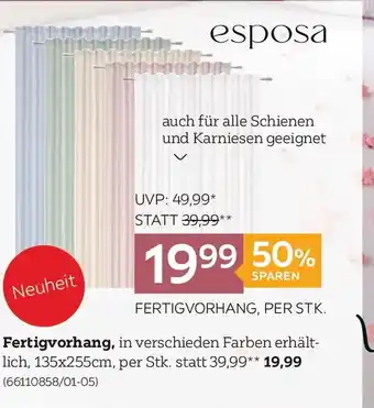 Das Angebot finden Sie in unterschiedlichen Geschäften. Schauen Sie sich alle Produkte aus dem Flugblatt an, um das günstigste Fertigvorhang zu ergattern. Wenn Sie gerne nachschauen möchten, ob der Artikel woanders noch günstiger ist, sollten Sie sich die Kategorie 'Möbel und Garten' anschauen. Möglicherweise sind diese Flugblattangebote auch interessant für Sie: Fertigvorhang, Esposa Fertigvorhang & Esposa Fertigvorhang.