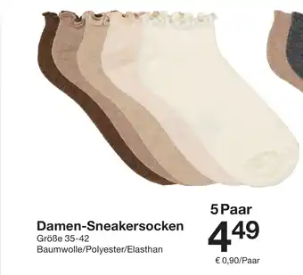 Den Preis von Damen-Sneakersocken finden Sie oben auf der Website, zusammen mit dem Datum, ab wann das Angebot erhältlich ist. Sie finden die Preise auch im aktuellen Zeeman Prospekt oder auf der Zeeman Website. Durch die Angebote aus dem Flugblatt können Sie sicher sein, die Zeeman Produkte zum garantiert besten Preis zu ergattern.