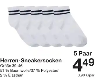 Den Preis von Herren-Sneakersocken finden Sie oben auf der Website, zusammen mit dem Datum, ab wann das Angebot erhältlich ist. Sie finden die Preise auch im aktuellen Zeeman Prospekt oder auf der Zeeman Website. Durch die Angebote aus dem Flugblatt können Sie sicher sein, die Zeeman Produkte zum garantiert besten Preis zu ergattern.